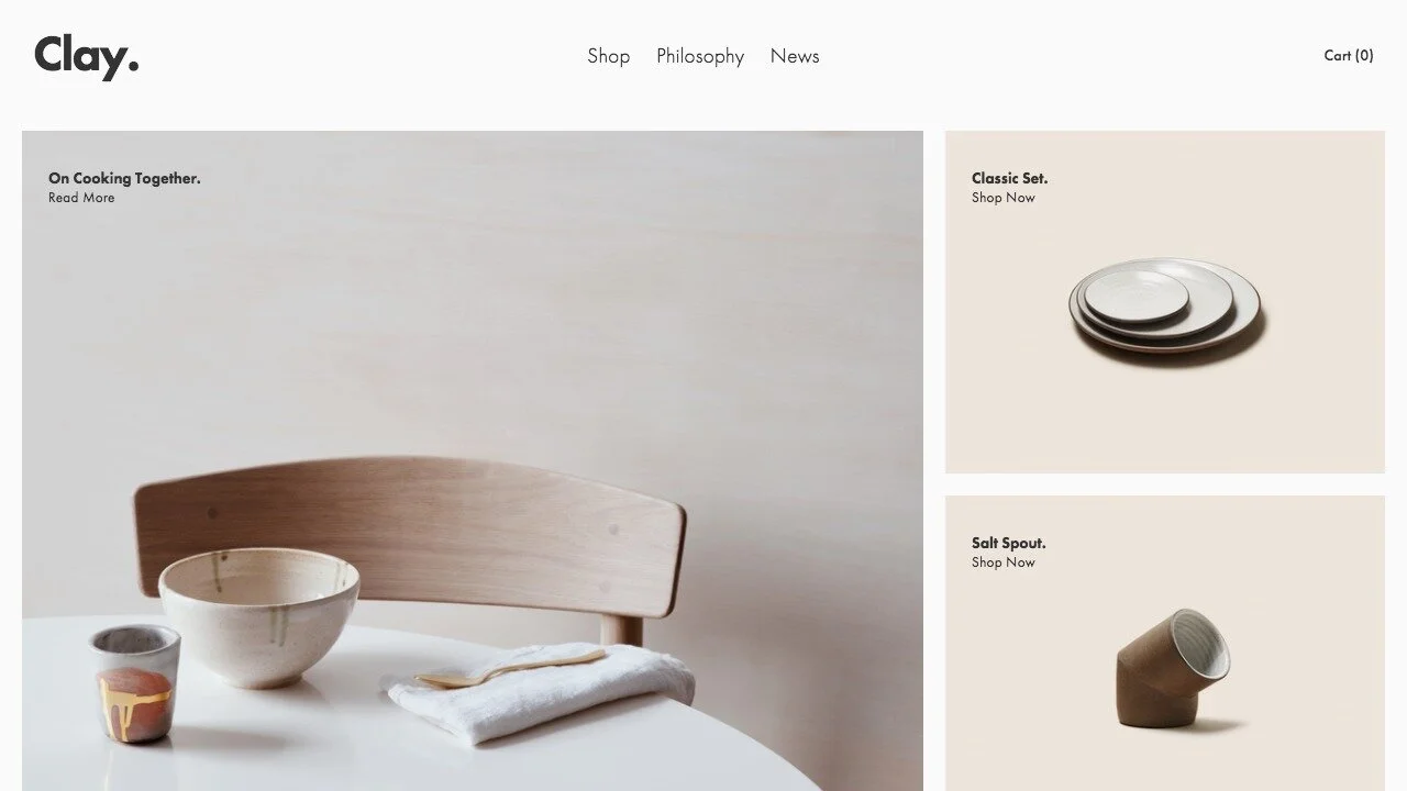 “Engage customers with Clay’s shoppable blog layout and landing page, which combines your brand’s announcements and featured products.”