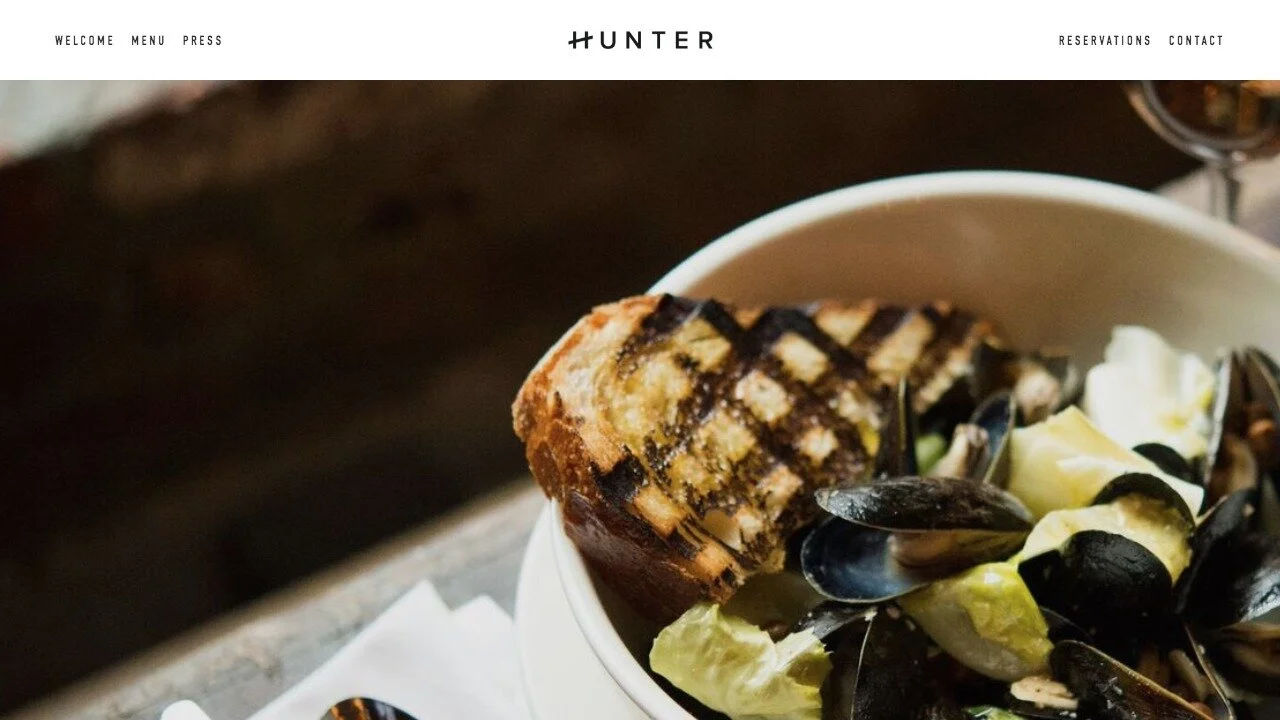 “Hunter’s immersive landing page features a gallery layout that turns your images into a visual tasting menu. And with a press section, reservation forms, and menu blocks, it’s easier than ever to stir appetites.”